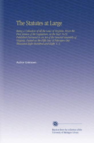 Books The Statutes at Large: Being a Collection of All the Laws of Virginia, From the First Session of the Legislature, in the Year 1619. Published Pursuant ... One Thousand Eight Hundred and Eight. V. 6 are in various formats like PDF, Kindle, ePub, Mobi and Ebook.