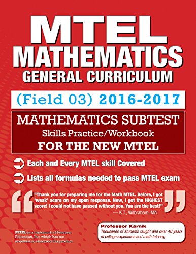 Read Online or Download MTEL Mathematics: Skills Practice, General Curriculum (03) Subtest PDF EPUB MOBI File, and Fast Download PDF, ePub, Mobi.